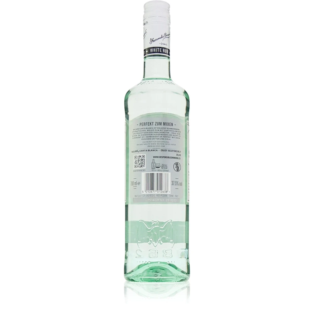 Was ist Bacardi Carta Blanca? Carta Blanca ist ein weißer Rum, bekannt für seine leichte und aromatische Note, ideal für Cocktails.