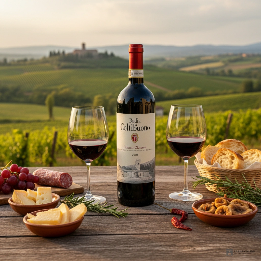 Entdecken Sie den edlen Badia a Coltibuono Chianti Classico, ein herausragender Rotwein aus Italien, der die Essenz seiner Region einfängt. Dieser Wein ist ein Meisterwerk der traditionellen Weinherstellung und wird aus autochthonen Sangiovese und Cannaiolo-Reben hergestellt, die biologisch in der renommierten Cantina Badia a Coltibuono gekeltert werden. Ein echter Genuss für Liebhaber italienischer Weine und Kenner der Chianti Classico Region.