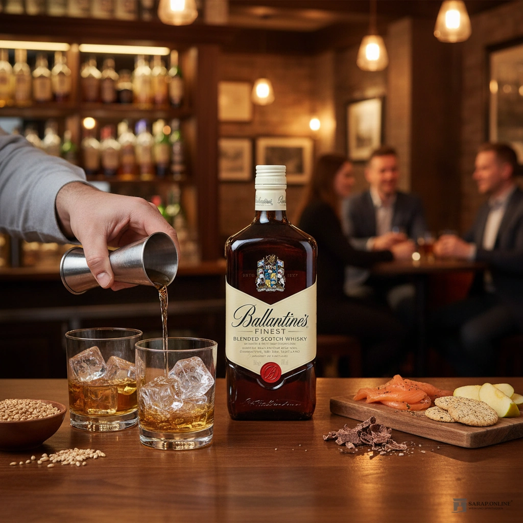 Der Finest entfaltet seine Aromen ideal bei Raumtemperatur und kann sowohl pur, als auch auf Eis genossen werden. Für eine erfrischende Variante empfiehlt sich die Kombination mit Soda, um einen klassischen „Scotch and Soda“ zu kreieren. Auch in Cocktails, wie beispielsweise einem Whisky Sour, macht der Ballantines Finest eine hervorragende Figur und verleiht dem Getränk eine angenehme Tiefe.
