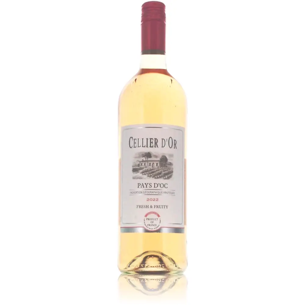 Der Cellier D’Or Rosé steht symbolisch für die feine Weinkunst Frankreichs. Mit seiner Herkunft aus dem malerischen Anbaugebiet Caux, gelegen zwischen Bezier und Montpellier, bietet dieser Rosé ein Geschmackserlebnis, das die Essenz des Languedoc in jeder Flasche einfängt.