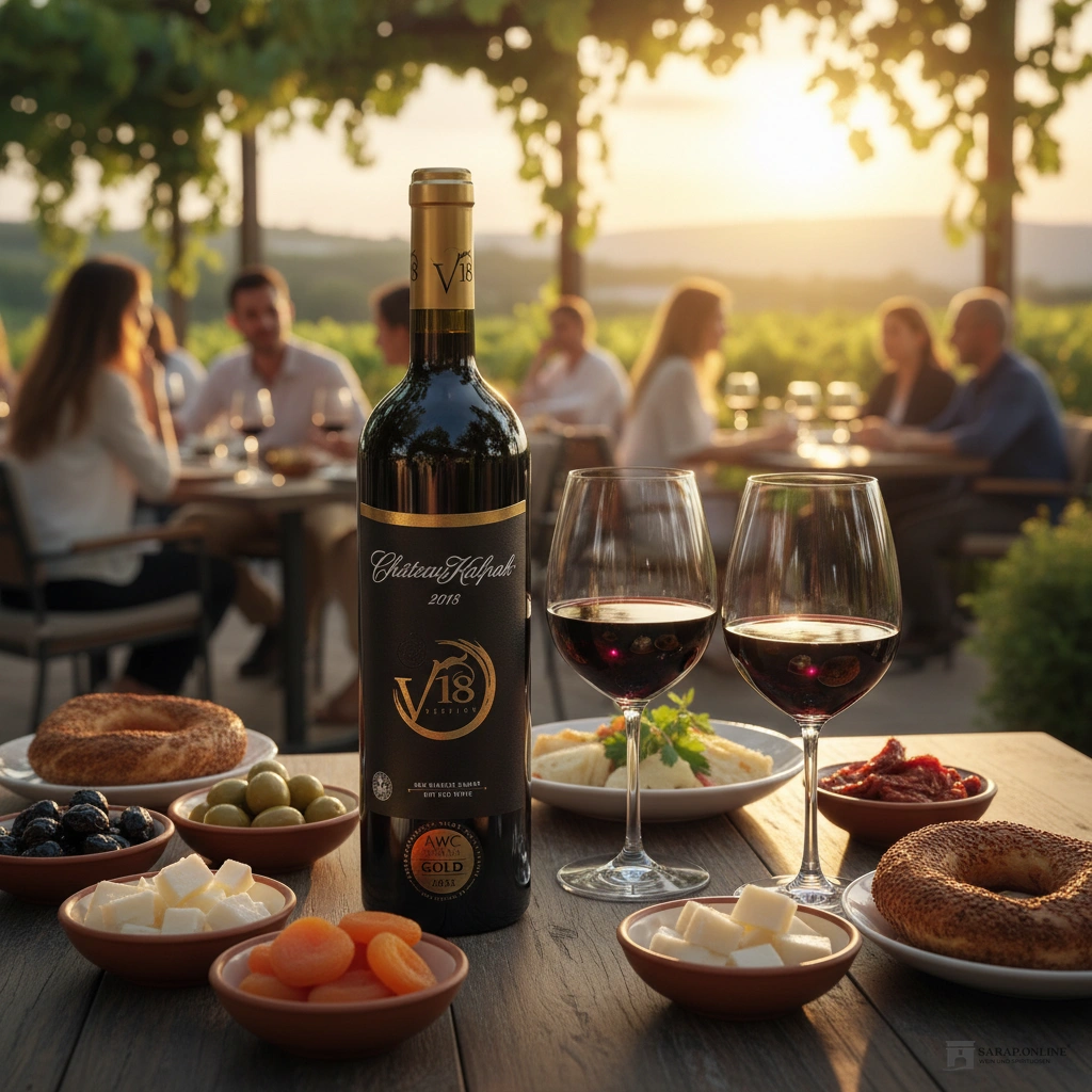 Der Chateau Kalpak V18 entfaltet sein volles Aroma und seine Komplexität idealerweise, wenn er bei einer Temperatur von etwa 16-18°C serviert wird. Auf jeden fall sollte dieser Wein vor dem Genuss dekantiert werden, um Zeit zum Atmen und Entfaltung zu haben. Er ist ein exzellenter Begleiter zu gehobenen Fleischgerichten, reifem Käse und komplexen, würzigen Speisen.