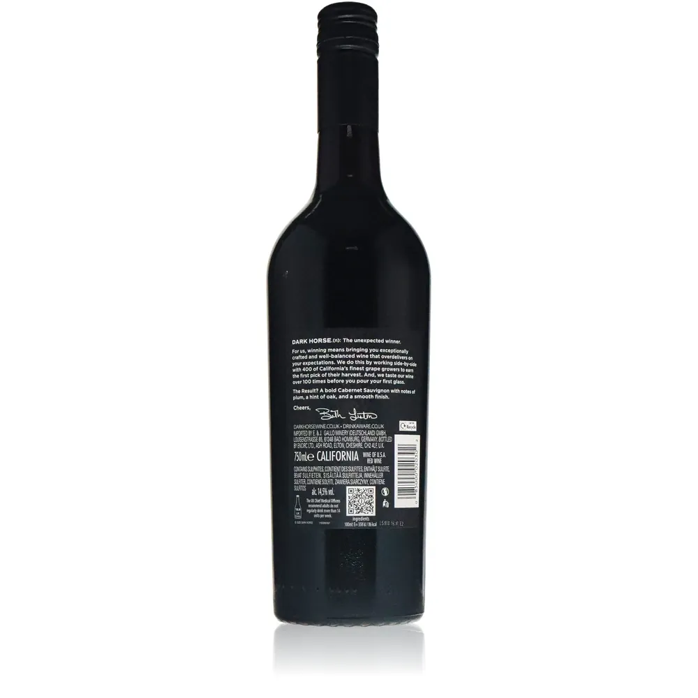 Der *Dark Horse Cabernet Sauvignon* verkörpert alles, was einen Wein ausmacht, der sich nicht in die Norm zwängen lässt. Mit seinen kühnen Aromen und einem unverwechselbaren Charakter ist dieser Rotwein ein Statement für all jene, die das Besondere suchen. Hergestellt aus Cabernet Sauvignon und Petite Sirah Trauben, spiegelt er die Essenz des sonnenverwöhnten Kaliforniens wider. Hier trifft Tradition auf Innovation – ein Balanceakt, den Dark Horse meisterhaft beherrscht.