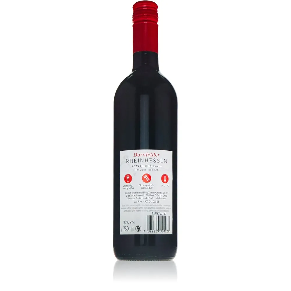 Der Dornfelder lieblich steht für eine neue Generation von Rotweinen aus Deutschland. Er spricht all jene an, die Charakter suchen, ohne auf Leichtigkeit verzichten zu wollen. Die dezente Restsüße unterstreicht die Fruchtigkeit dieser Rebsorte eindrucksvoll. Wer klassische Rotweine wie Spätburgunder schätzt, wird überrascht sein von der Vielseitigkeit dieses dornfelders – denn hier treffen kräftige Aromen auf einen angenehm unkomplizierten Trinkfluss.