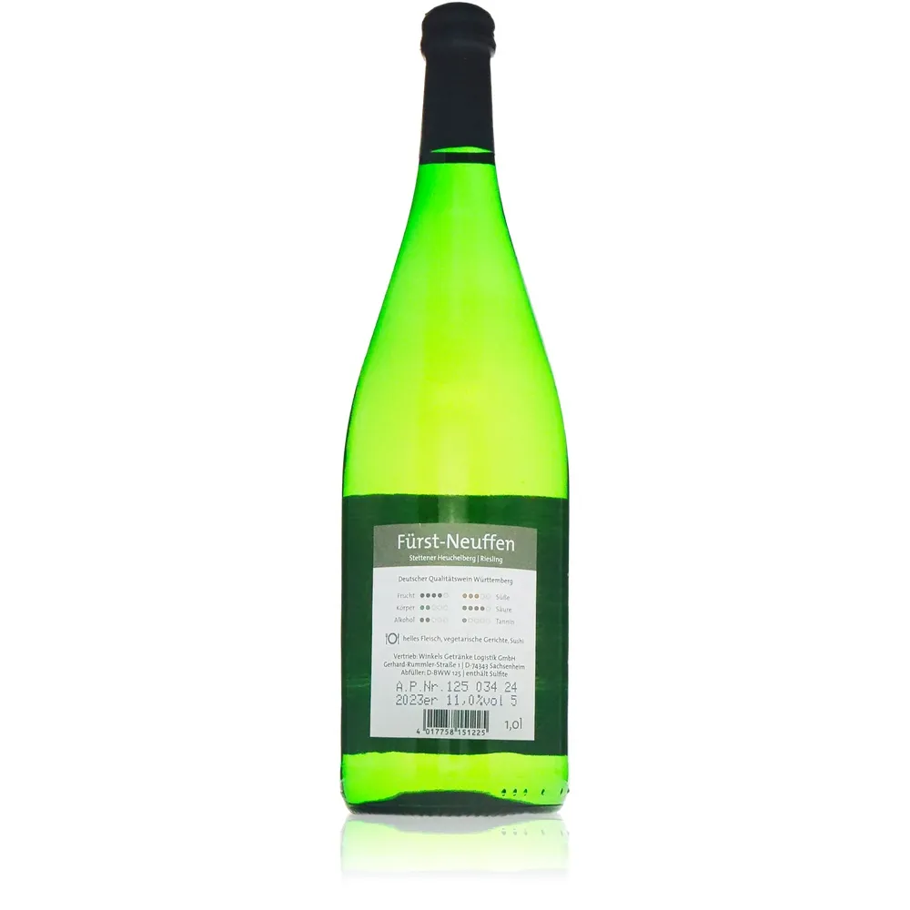 Mit dem Fürst Neuffen Riesling QbA 1L hält ein Stück baden-württembergischer Lebensfreude Einzug ins eigene Zuhause – charmant serviert in großzügiger Literflasche für geteilte Augenblicke oder unvergessliche Abende zu zweit. Lassen Sie sich verführen von seiner Balance zwischen Frische und Finesse; ein Wein wie geschaffen dafür, das Leben stilvoll zu feiern.
