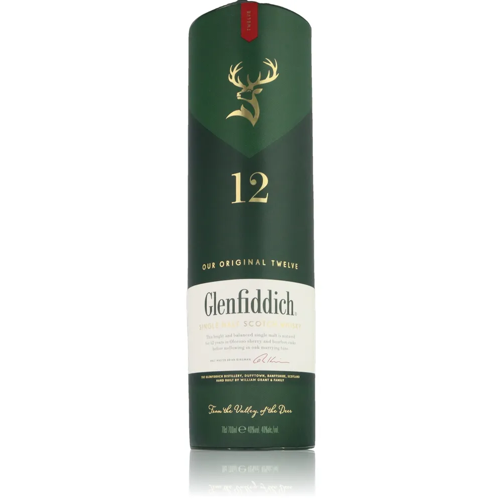 Der Glenfiddich 12 Jahre ist ein klassischer Single Malt Whisky aus den schottischen Highlands. Er wird von William Grant & Sons hergestellt, einem Familienunternehmen mit einer reichen Geschichte, die bis ins Jahr 1886 zurückreicht.
