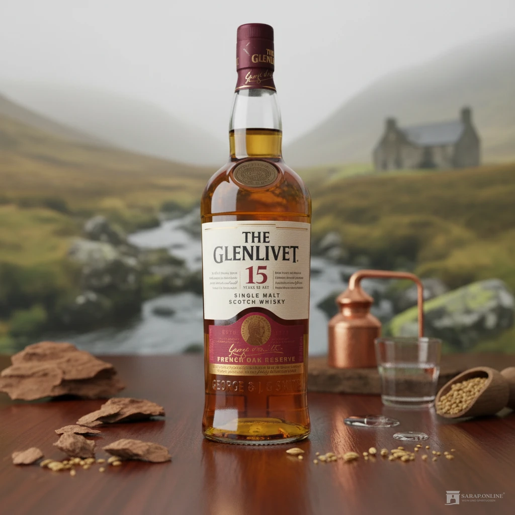 Dieser exquisite Whisky zeichnet sich durch seine tiefe Goldfarbe aus und entfaltet eine Vielzahl von Aromen. Von Zitrus bis Zimtgewürz, bietet der Glenlivet 15 Jahre eine cremige und reichhaltige Note, die ihn zu einem unverwechselbaren Genuss macht. Ein Teil des Whiskys wird in Limousin-Eiche fertiggestellt, was ihm anhaltende Noten von gerösteten Mandeln verleiht und seine Komplexität erhöht.