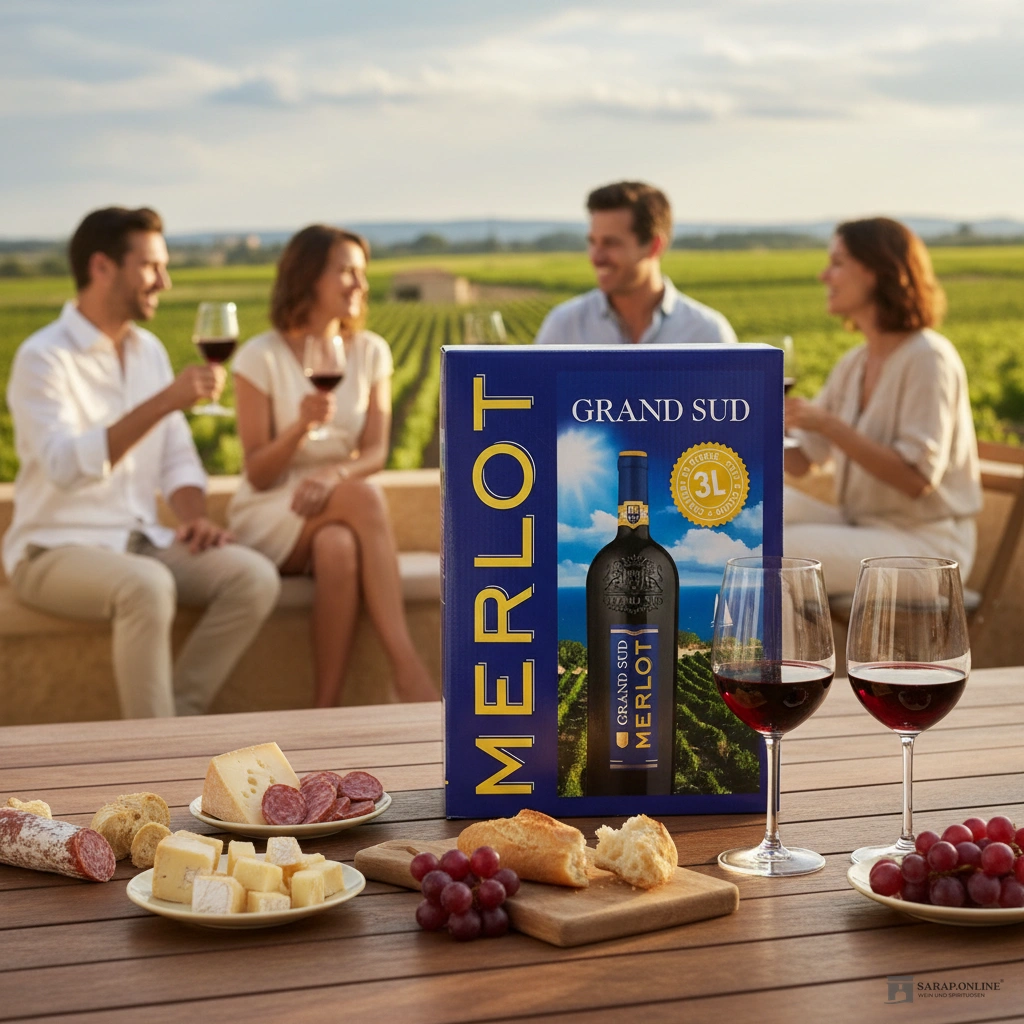 Der **Grand Sud Merlot Rot – Bag in Box** ist ein ausdrucksstarker und aromatischer Rotwein, der seine Ursprünge in den renommierten Weinbergen von Bordeaux hat, heute jedoch im Süden Frankreichs seine neue Heimat gefunden hat.