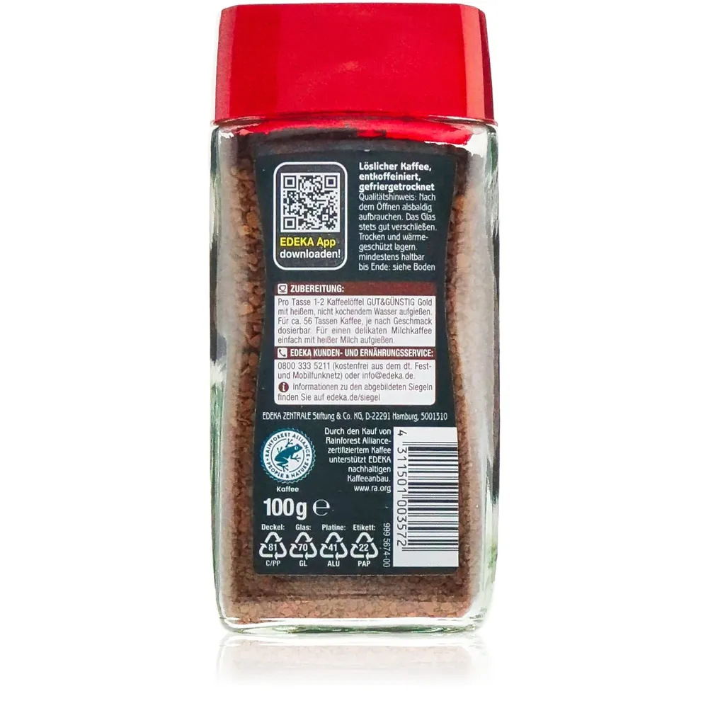 Goldene Kaffeepause: Gut & Günstig Gold entkoffeiniert löslicher Kaffee 100g