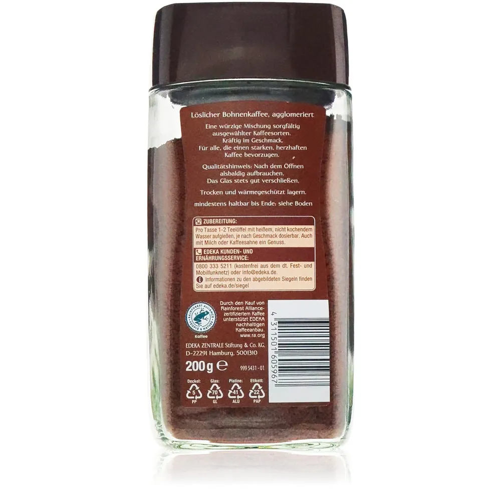 Ganz gleich ob als „instant kaffee“, klassischer „löslicher kaffee“ oder aromatischer „kräftig löslicher bohnenkaffee“: Dieses Produkt vereint Vielseitigkeit mit ausgewogenem Geschmackserlebnis – perfekt abgestimmt auf Ihren Alltag. Wer nach einem starken Partner im Regal sucht, entdeckt hier eine Lösung mit Format – x 200g pures Kaffeevergnügen warten darauf entdeckt zu werden.