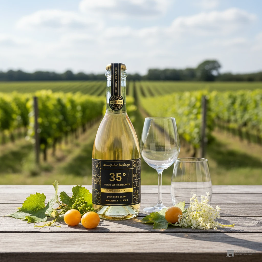 Der Jörg Geiger 35 Grad Sauvignon Blanc präsentiert sich mit einem lebendigen Geschmacksprofil, das durch die Fruchtigkeit der Mirabelle harmonisch ergänzt wird. Die blumigen Noten verleihen dem Getränk eine subtile Eleganz und lassen es im Glas erstrahlen. Diese Komposition resultiert in einem sanften goldenen Schimmer, der sowohl Auge als auch Gaumen verführt. Der Charakter dieses Getränks ist geprägt von einer perfekten Balance zwischen Säure und Süße, was es zu einem vielseitigen Begleiter für verschiedenste Anlässe macht.