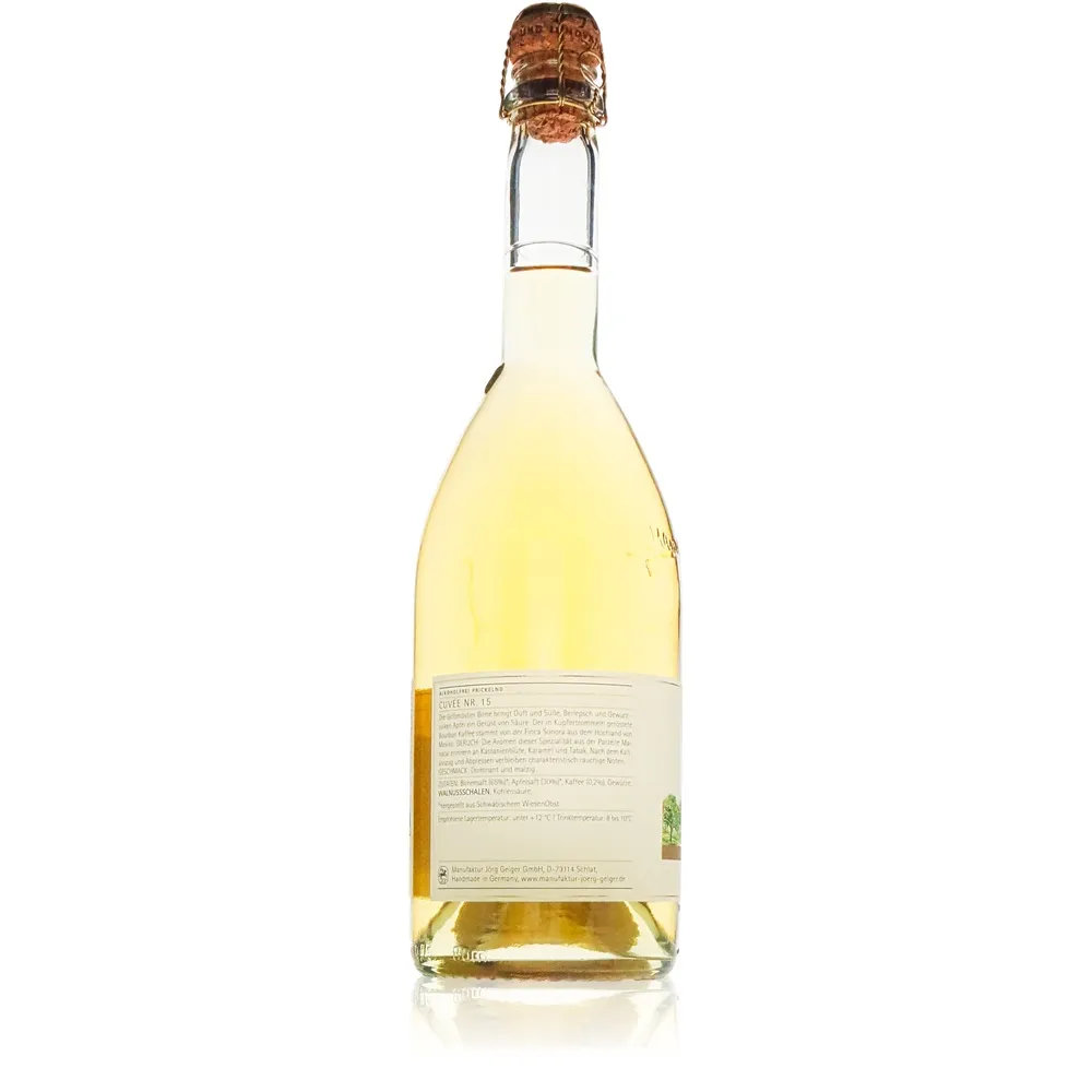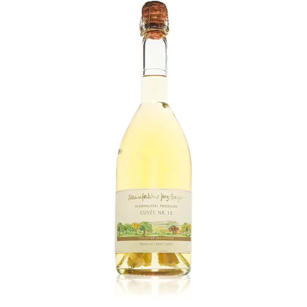 Mit dem Jörg Geiger Cuvee Nr. 15 prickelnd betritt man eine Welt, in der pure Eleganz auf spritzige Lebensfreude trifft. Die Manufaktur Jörg Geiger hat mit dieser Cuvée ein Meisterwerk geschaffen, das weit über einen klassischen Apfelsaft hinausgeht und als alkoholfrei prickelndes Erlebnis neue Maßstäbe setzt. Hier verschmelzen handverlesene Kulturäpfel aus den Streuobstwiesen Baden-Württembergs mit weiteren erlesenen Früchten zu einer fein abgestimmten Symphonie – ein Genussmoment, der überrascht und inspiriert.