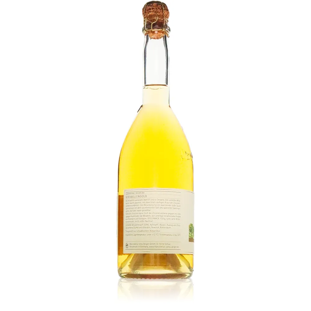 Jörg Geiger gilt seit Jahren als Visionär für hochwertige Säfte aus Deutschland. Mit Mirabellengold prickelnd Alkoholfrei präsentiert die Marke eine elegante Antwort auf den Wunsch nach exklusivem Genuss ohne Alkohol. Das Geheimnis liegt im Zusammenspiel sorgfältig ausgewählter Früchte und einer meisterhaften Balance: Der feine Charakter sonnengereifter Mirabellen trifft auf eine prickelnde Perlage, die jede Begegnung mit diesem Getränk zu einem Fest macht.