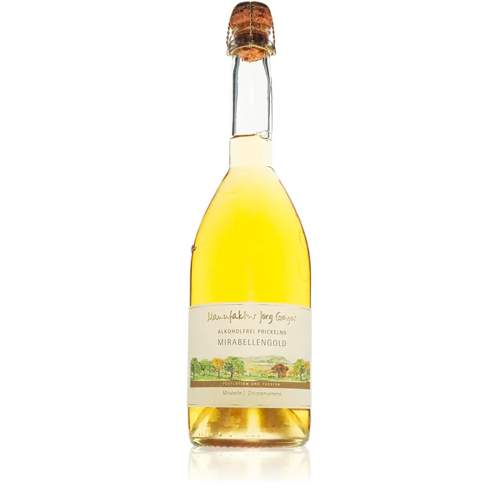 Stellen Sie sich einen stillen Sommertag in Baden-Württemberg vor, wenn das Licht golden über die Streuobstwiesen tanzt und die Luft vom süßen Duft reifer Mirabellen erfüllt ist. Genau dieses Gefühl fängt Mirabellengold prickelnd Alkoholfrei von Jörg Geiger ein. Hier werden Erinnerungen an unbeschwerte Tage wach – Momente, in denen alles möglich scheint und der Genuss im Mittelpunkt steht.