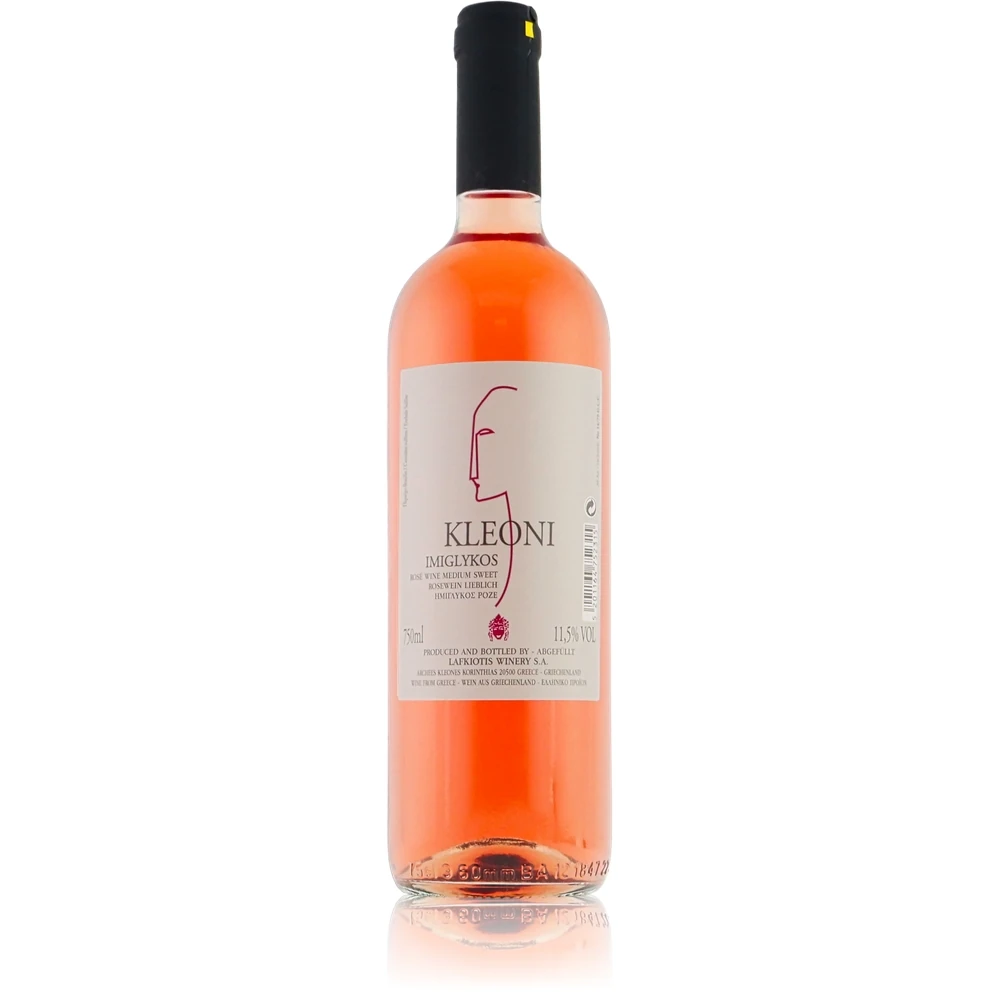 Der Kleoni Imiglykos Rose zeichnet sich durch seine zarte rosa Farbe und sein verführerisches Aroma aus, das Noten von frischen roten Früchten wie Erdbeeren und Himbeeren vereint. Am Gaumen entfaltet sich ein harmonisches Zusammenspiel von süßer Fruchtigkeit und einer leichten, erfrischenden Säure, die den Wein besonders ausgewogen macht. Dies macht ihn zu einer hervorragenden Wahl für gesellige Anlässe oder einfach zum Genießen in einem ruhigen Moment.