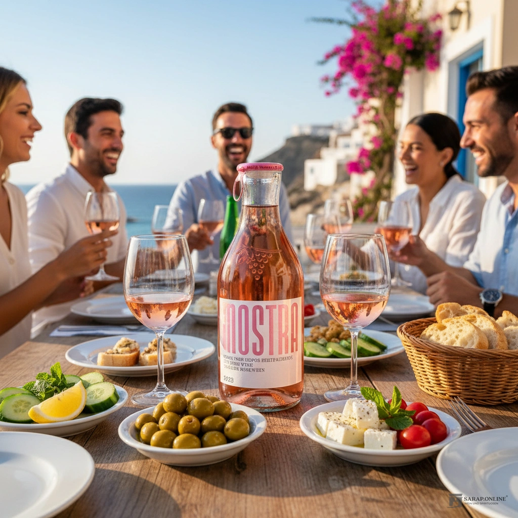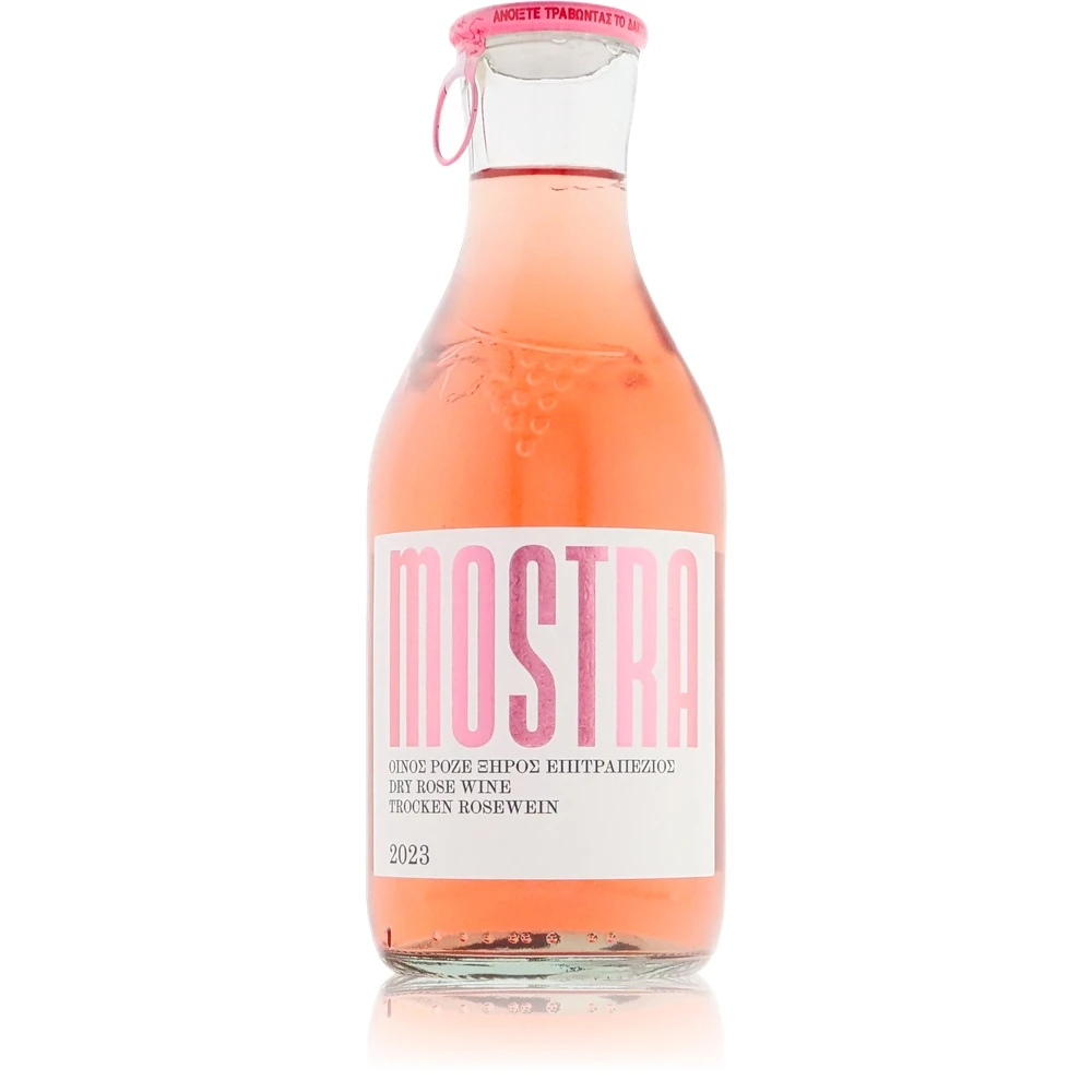 Erleben Sie den Zauber Griechenlands mit jedem Schluck Mostra Rose. Ein Roséwein, der Tradition und moderne Genusskultur auf elegante Weise verbindet.