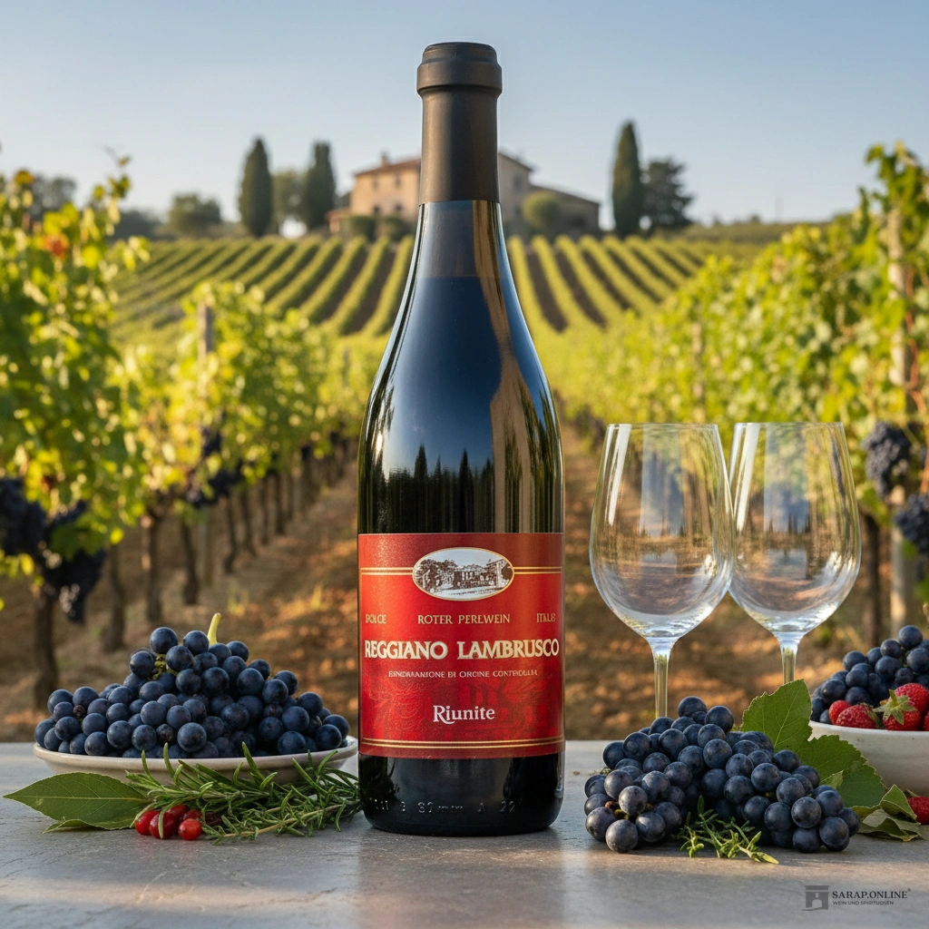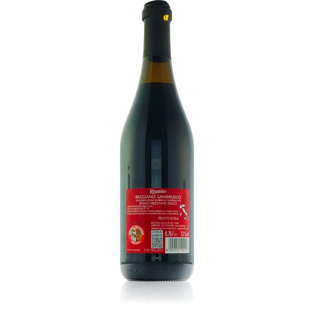 Entdecken Sie den charaktervollen Riunite Reggiano Lambrusco, einen fruchtigen und spritzigen Rotperlwein aus Italien.