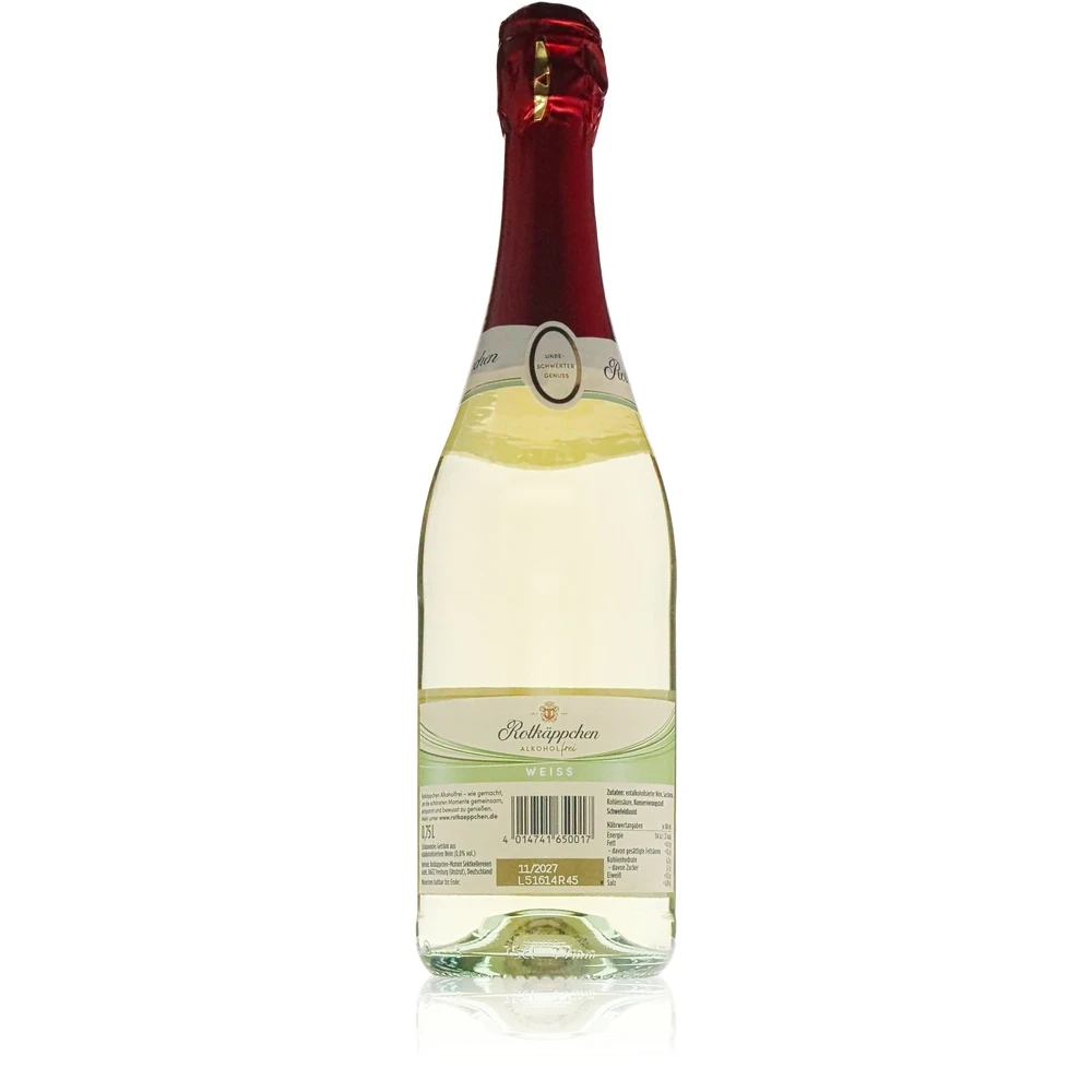 Rotkäppchen Sekt alkoholfrei gehört zur Kategorie der alkoholfreien Schaumweine und wird von der traditionsreichen Rotkäppchen Sektkellerei produziert. Diese Kellerei hat sich seit ihrer Gründung einen Namen als einer der führenden Hersteller von hochwertigem Sekt gemacht. Der alkoholfreie Schaumwein wird sorgfältig in Deutschland hergestellt und bietet eine stilvolle Option für bewussten Genuss.