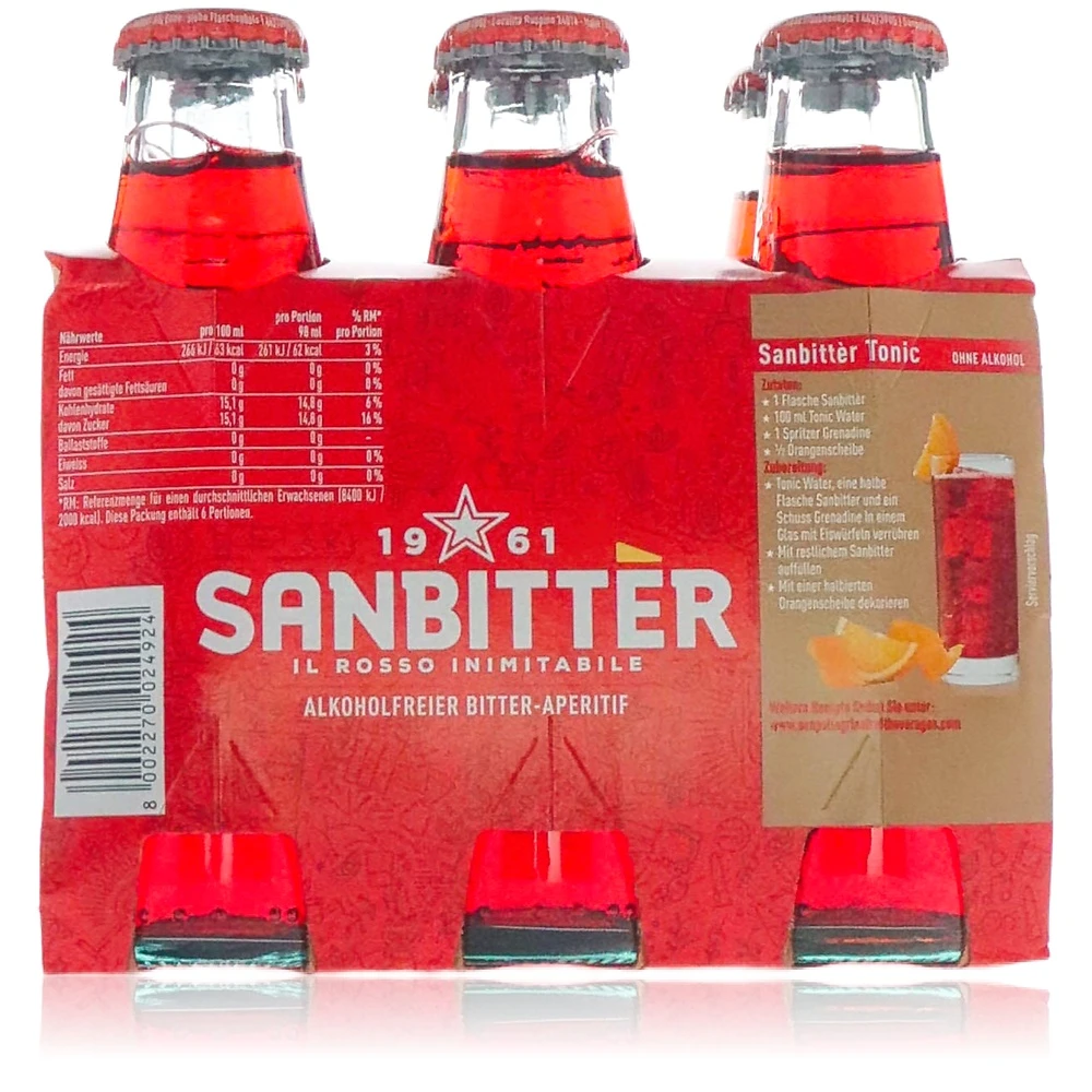 Sanbitter verkörpert den authentischen Geschmack Italiens in einem alkoholfreien Aperitif, der durch seine Vielseitigkeit besticht. Als Teil des vielfältigen Angebots von bietet er einen unvergleichlichen Genussmoment für alle Liebhaber intensiver Aromen und geselliger Anlässe.