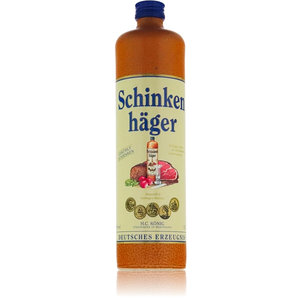 Schinkenhäger ist eine traditionelle deutsche Spirituose, die seit Jahrhunderten für ihren charakteristischen Wacholdergeschmack bekannt ist. Ursprünglich wird er in der Region Steinhagen in Westfalen hergestellt – einem Ort, der eng mit der Produktion von Wacholderschnaps verbunden ist. Der Name leitet sich dabei vom Herkunftsort Steinhagen ab und nicht, wie oft fälschlich angenommen, vom Lebensmittel „Schinken“. Sein unverwechselbarer Charakter macht ihn bis heute zu einer kultigen Spezialität.