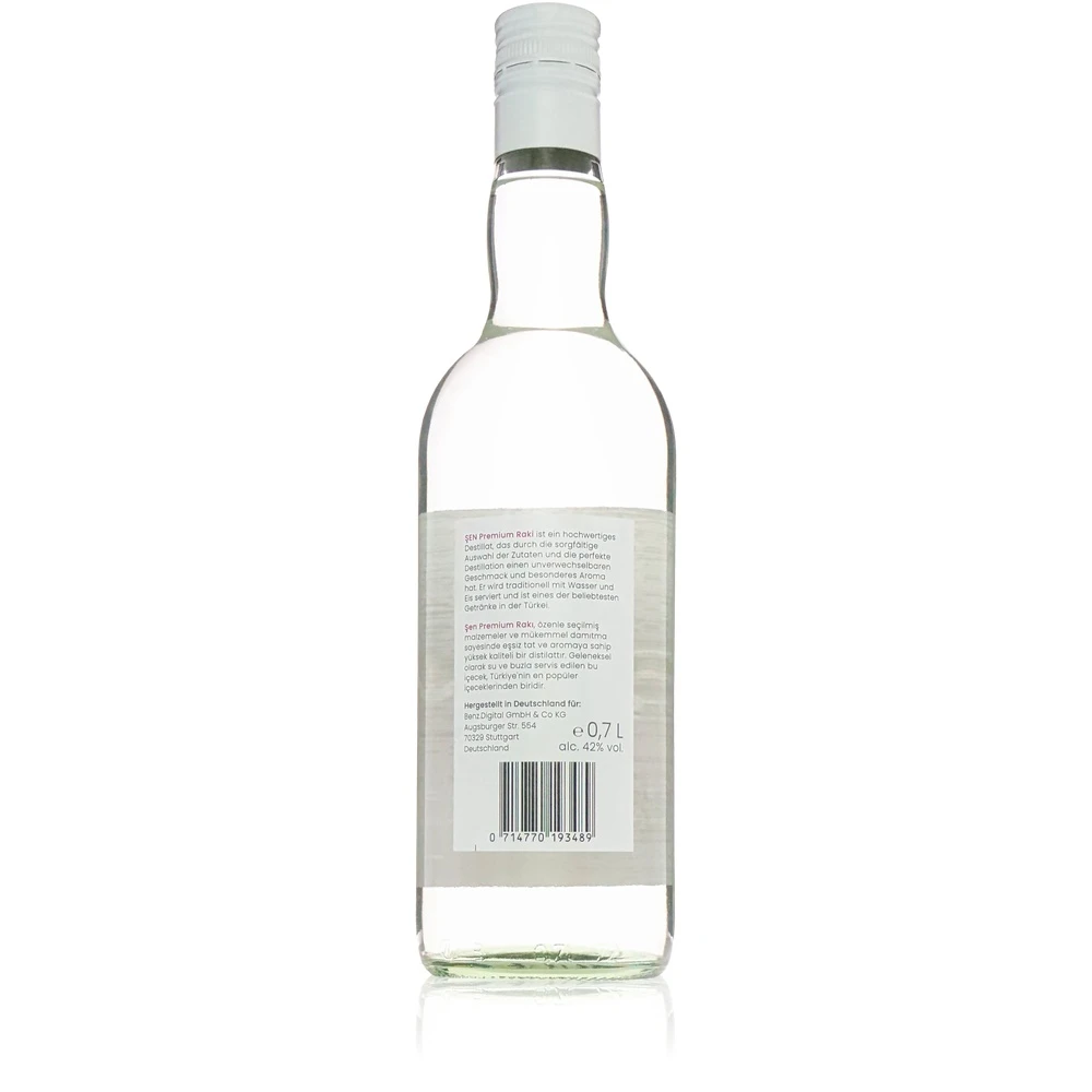 Sen Raki ist 3fach destilliert und ohne Zuckerzusatz hergestellt. Er bietet einen authentischen Geschmack und sorgfältige Handwerkskunst. Durch die Herstellung in Deutschland fallen keine Kosten für die Zoll- und Steuer-Formalitäten in der Türkei an, Währungsverluste und teure Transportwege entfallen, die Umwelt wird geschont und Sie erhalten einen hochwertigen, authentischen und geschmackvollen Raki zu einem unschlagbaren Preis.