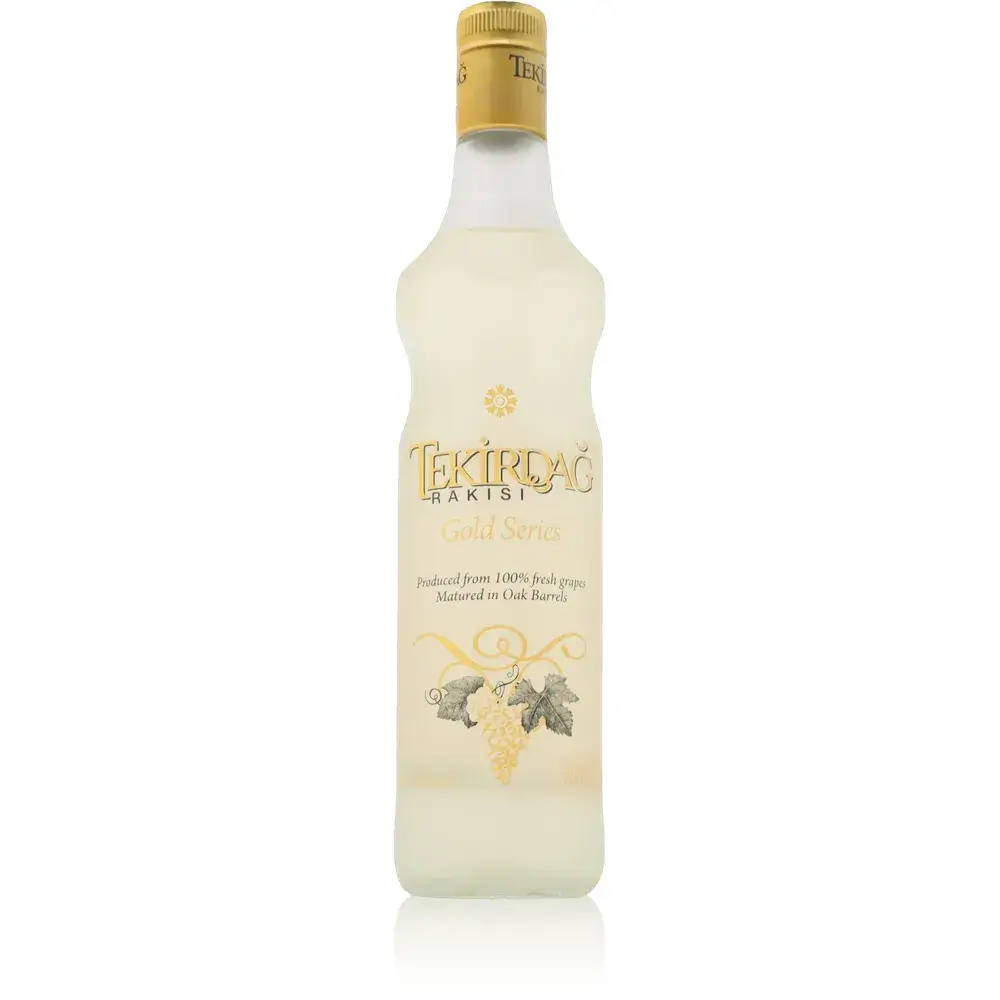 Für Tekirdag Gold werden ausschließlich frische Trauben verwendet, die zweifach destilliert werden. Dieser Prozess sorgt für einen klaren und weichen Trinkfluss, während die subtile Anisnote bewahrt bleibt. Nach der Destillation reift der Raki für 90 Tage in Eichenfässern. Diese Fasslagerung verleiht ihm seine charakteristische goldgelbe Farbe und bereichert den Geschmack um feine Holznoten.