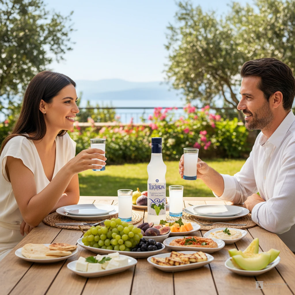 Tekirdag Raki ist eine Ortschaft in Thrakien am Marmarameer, und sehr bekannt als traditionsreiches Weinanbaugebiet. Raki wird in der Regel als Aperitif mit Wasser vermischt auf Eis getrunken. Beim Verschmischen mit Wasser, bilden die nicht löslichen Öle des Anis winzige Tröpfchen, die die milchige Trübung hervorrufen. Aufgrund dieses Effekts bezeichnen die Türken Raki auch als Löwenmilch („aslan sütü“).