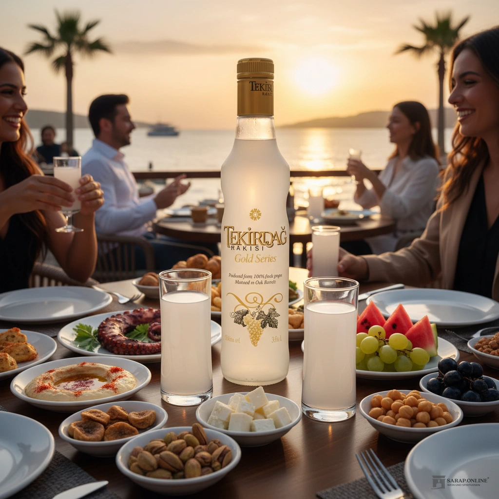 Entdecken Sie Tekirdag Raki Gold series, ein exquisites Premium-Raki-Erlebnis aus der renommierten Tekirdag-Region in der Türkei. Tekirdag ist eine Ortschaft in Thrakien am Marmarameer, und sehr bekannt als traditionsreiches Weinanbaugebiet.