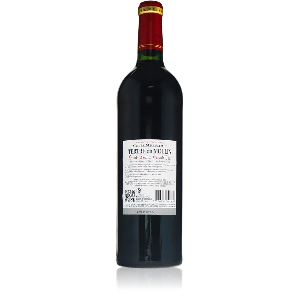 Tertre du Moulin lädt dazu ein, das Leben stilvoll zu zelebrieren: Sei es bei einem festlichen Dinner unter Freunden oder als stilvoller Begleiter zu ruhigen Momenten der Entspannung. Dieser Bordeaux versteht es meisterhaft, kulinarische Höhepunkte noch besonderer zu machen – diskret präsent und doch voller Persönlichkeit.