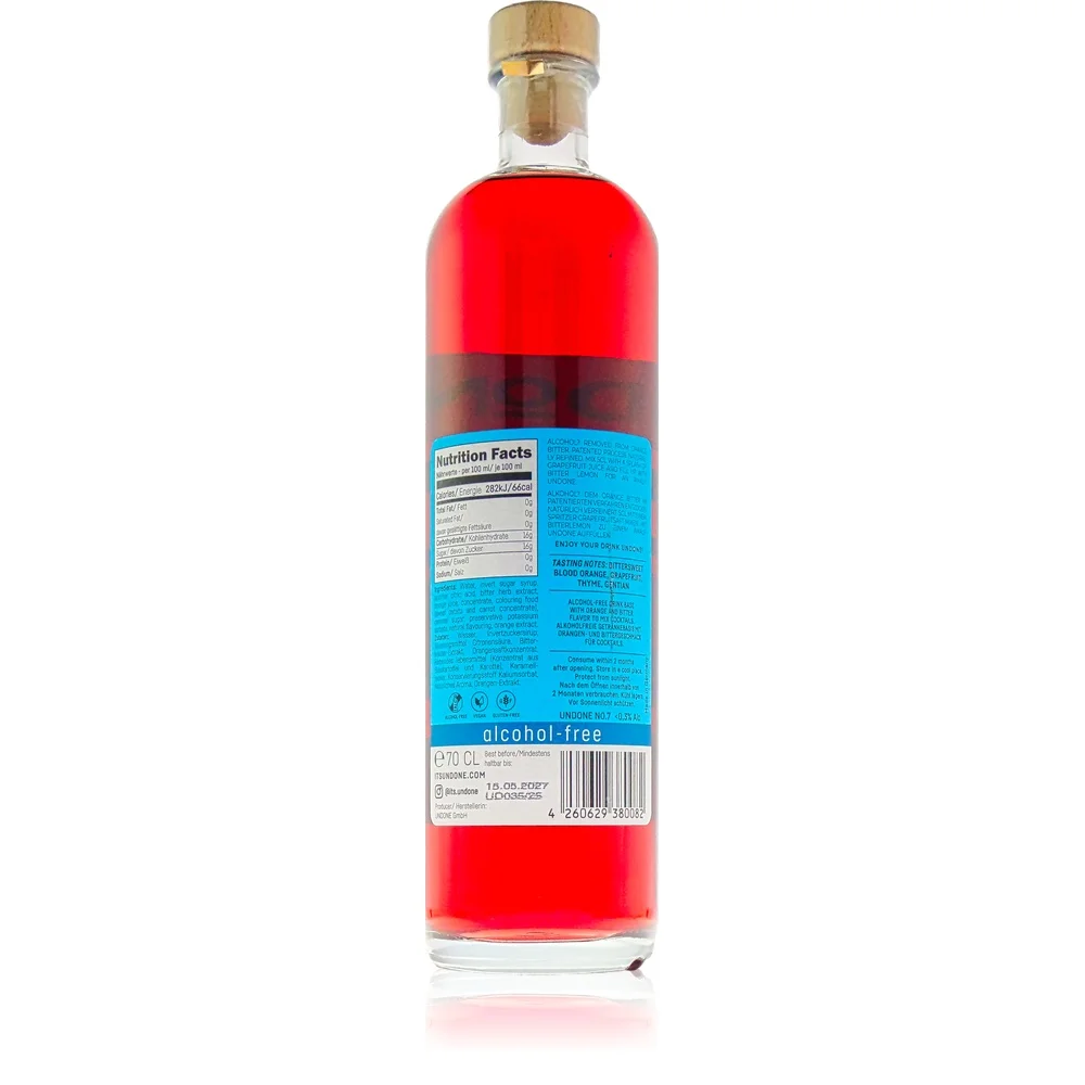 Während die meisten Orangenbitter Alkohol enthalten, bietet Undone No 7 Not Bitter eine alkoholfreie Alternative, die speziell für den Genuss ohne Alkohol konzipiert wurde.