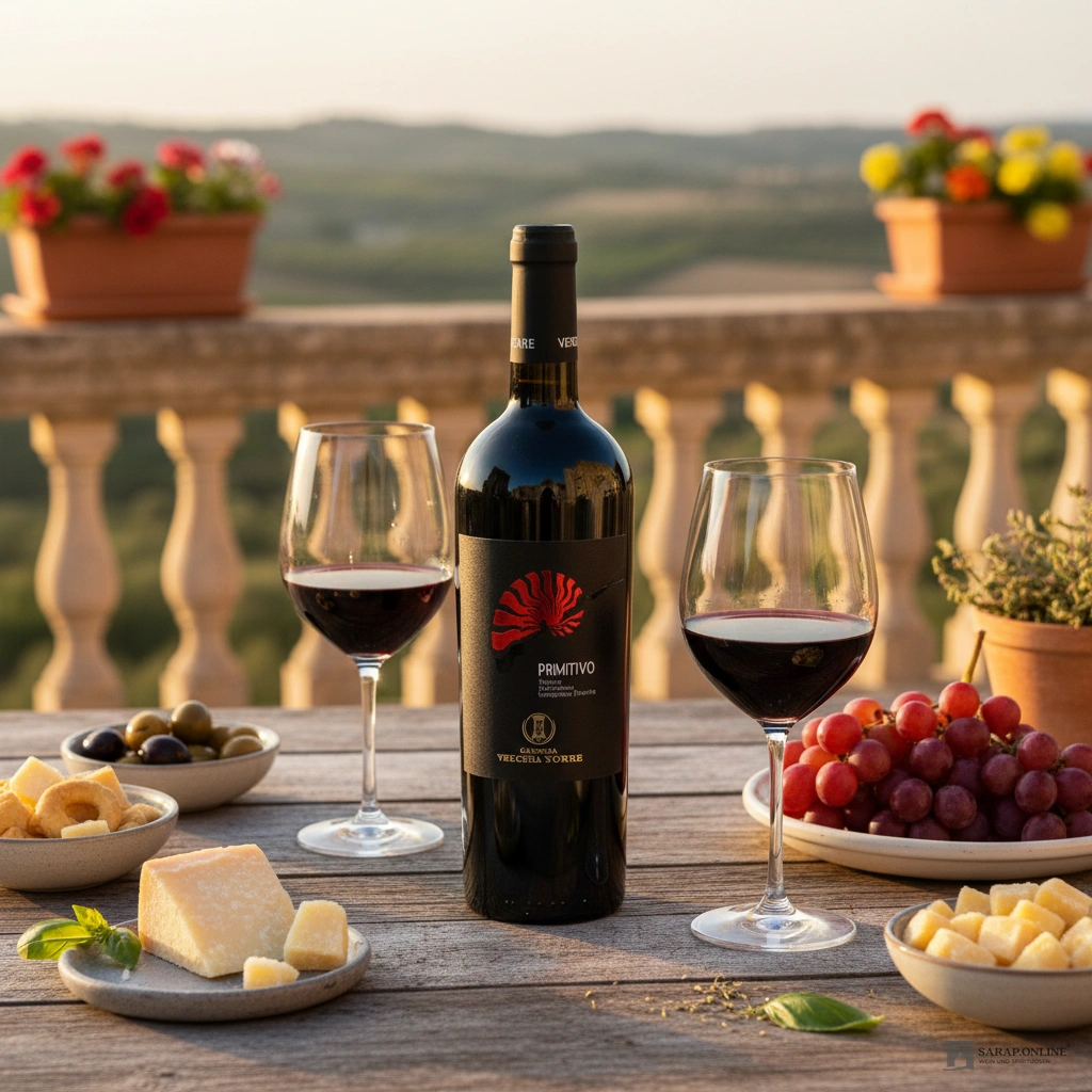Der Vecchia Torre Primitivo del Salento ist somit nicht nur ein Wein für Kenner und Liebhaber italienischer Rotweine, sondern auch eine exzellente Wahl für jene, die den mediterranen Lebensstil und die Kultur des Weingenusses schätzen. Seine Balance aus Frucht, Wärme und Struktur macht ihn zu einem unvergesslichen Erlebnis für jeden Anlass.